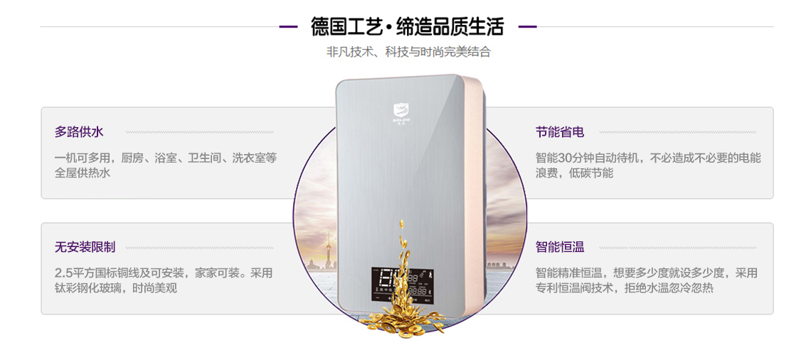 中山市速龍電器科技有限公司-家電十大品牌,創(chuàng)立于2012年,系全球化電器科技服務(wù)商,專(zhuān)注致力于速熱式電熱水器的研發(fā)、生產(chǎn)、銷(xiāo)售,以及配套服務(wù)解決方案領(lǐng)域,是一家以技術(shù)品質(zhì)著稱(chēng)的電器科技企業(yè)。 我們敏銳洞悉電器行業(yè)的發(fā)展態(tài)勢(shì),不斷引入先進(jìn)的技術(shù)及設(shè)備,在擁有5300平方米現(xiàn)代化生產(chǎn)基地的基礎(chǔ)上,依托自身?yè)碛凶灾鲀?nèi)膽生產(chǎn)線(xiàn)...